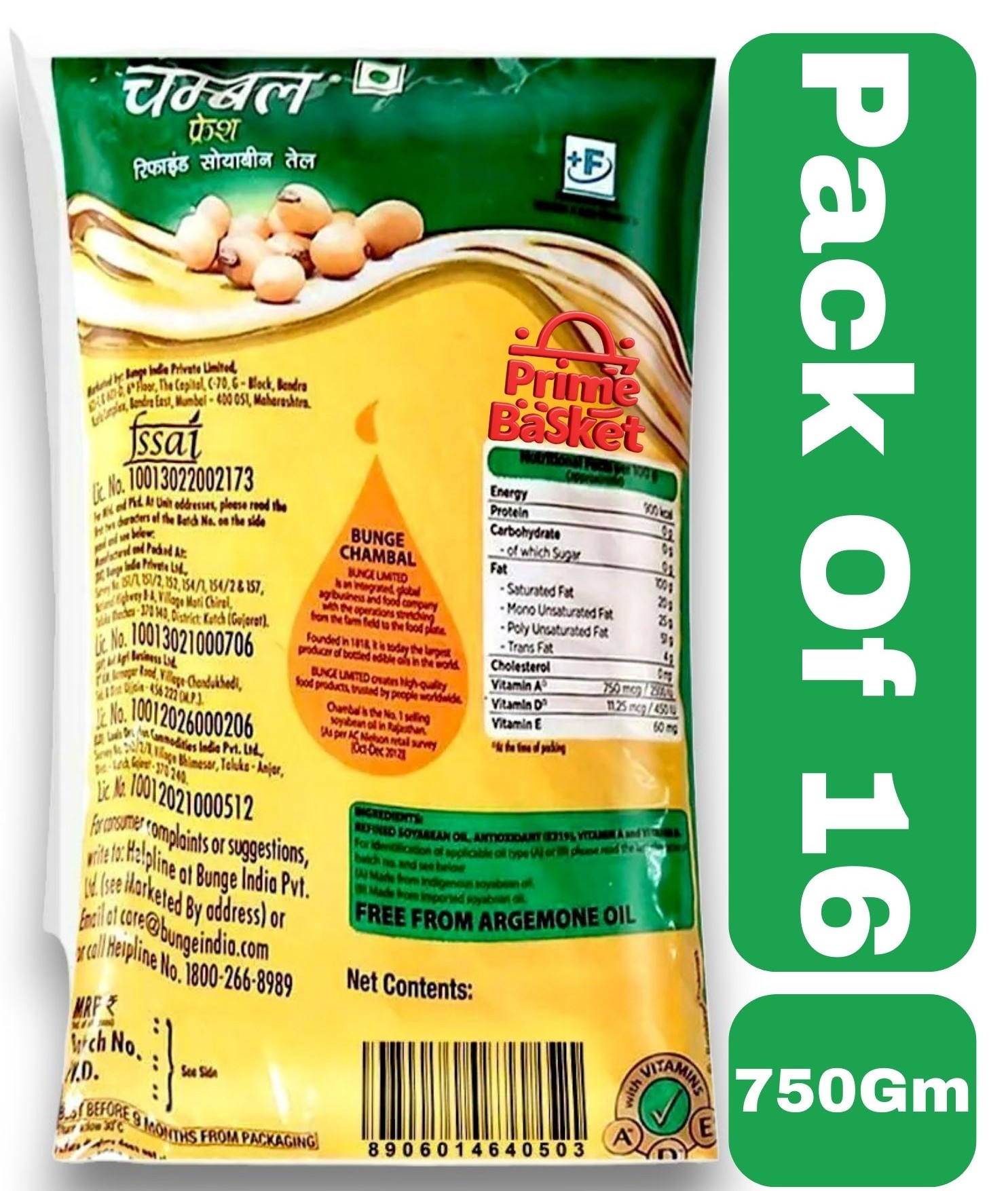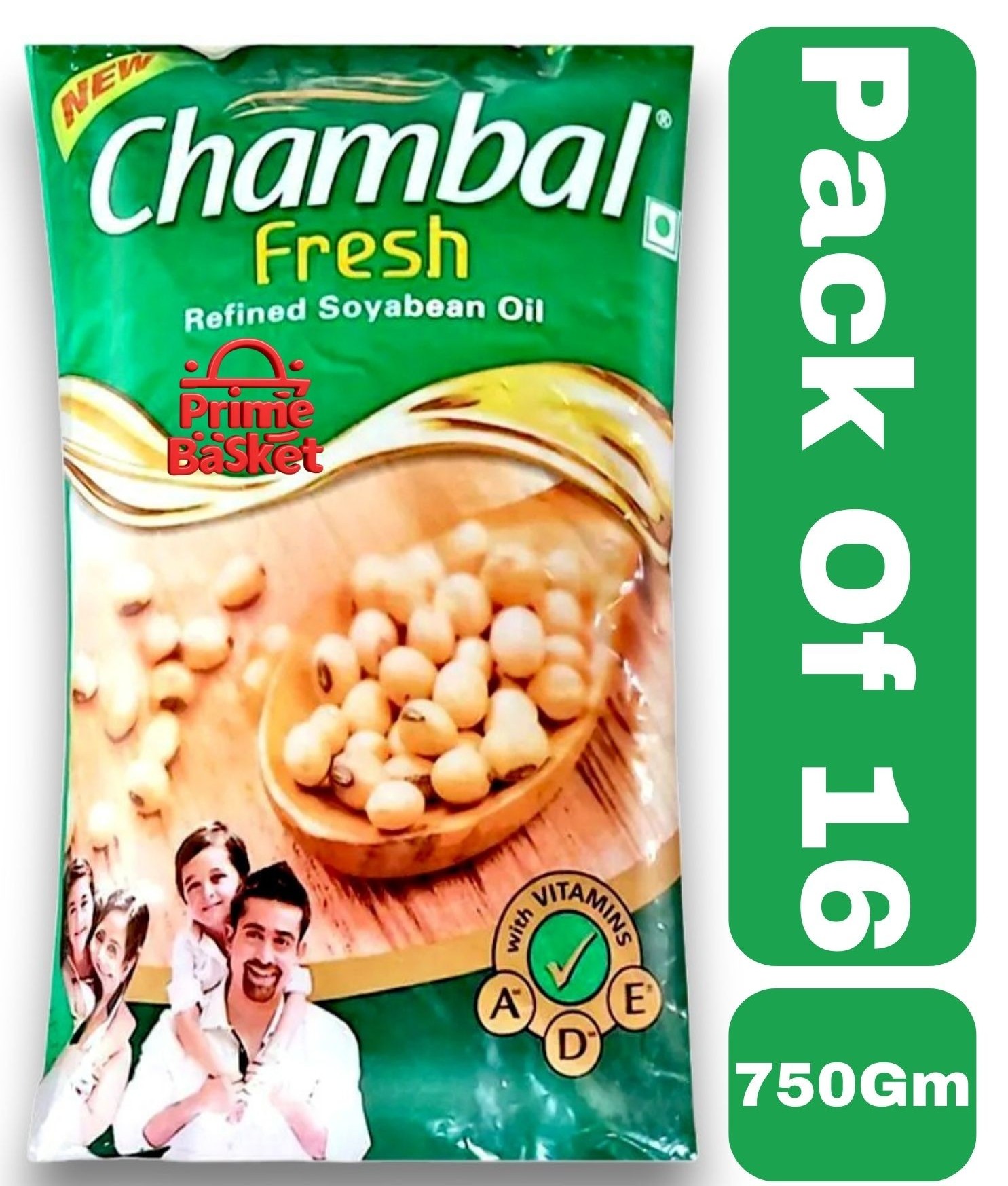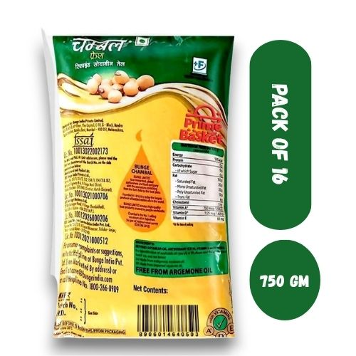 Chambal Fresh Refined SoyaBean Oil 750 Grm Pouch (Pack Of 16)