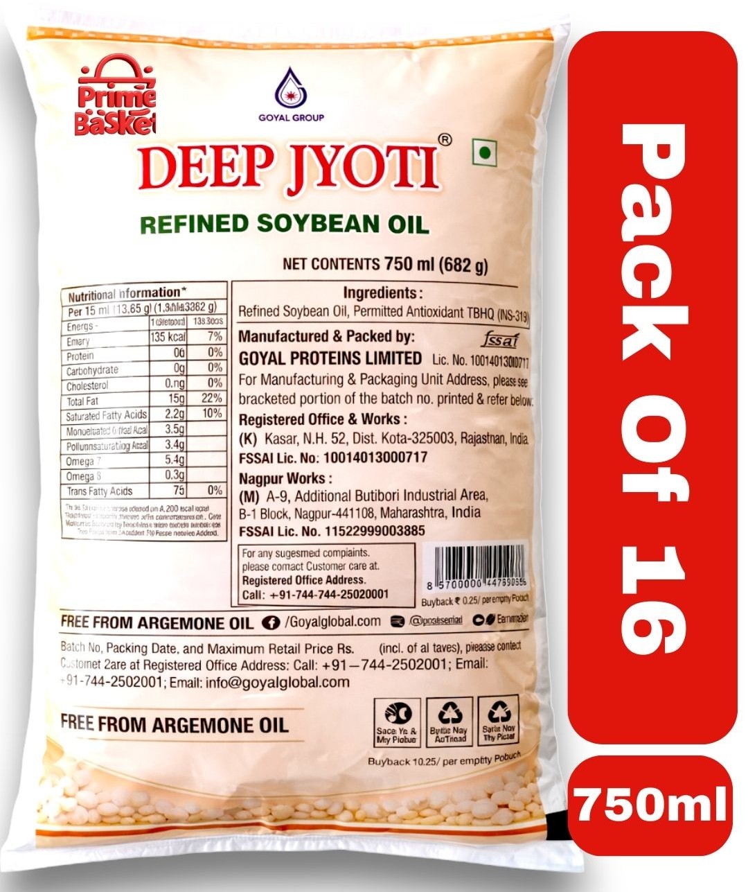 Deep Jyoti Refined Soyabean Oil 750 ml (Pack Of 16)