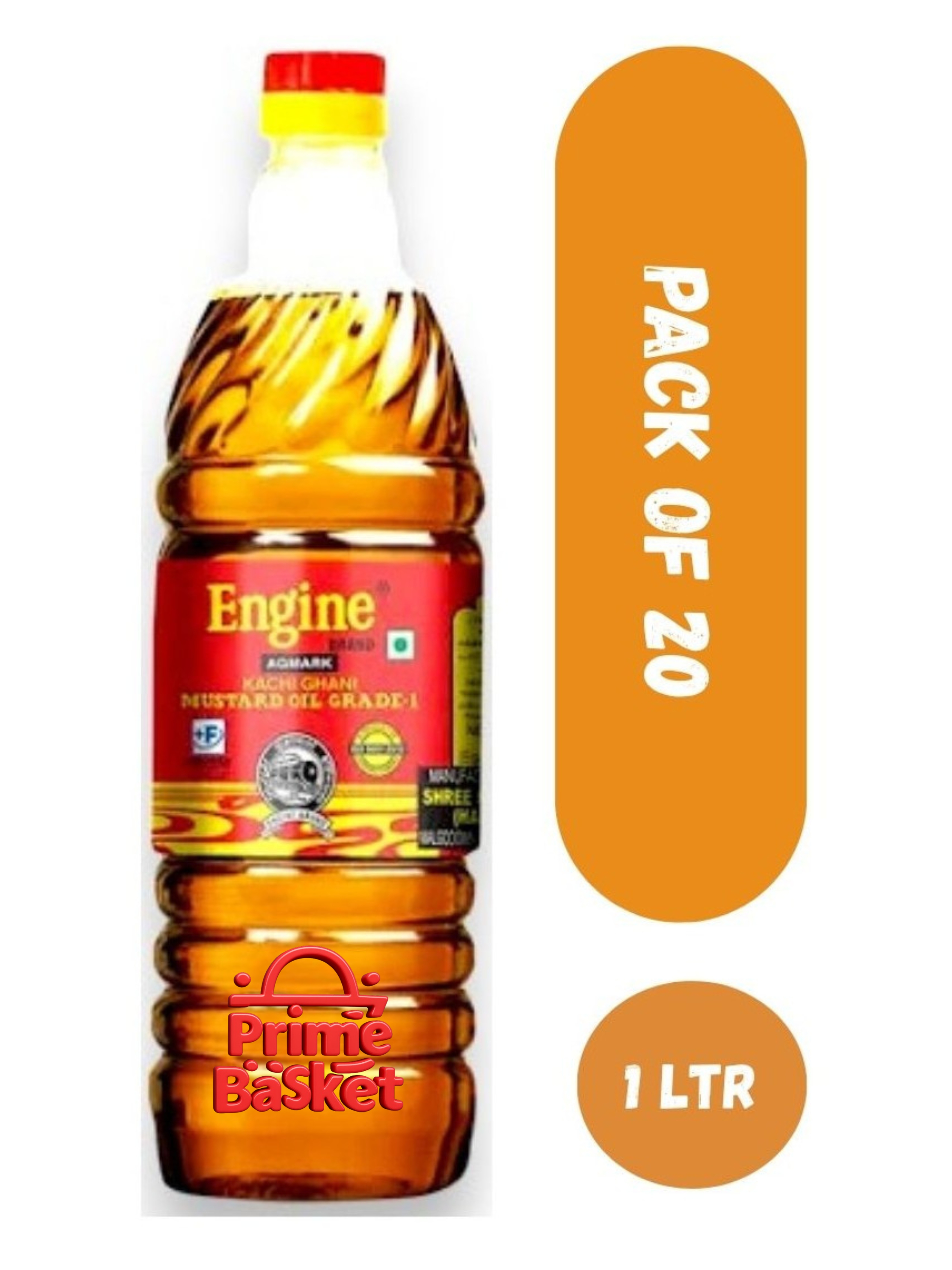 Engine Kacchi Ghani Mustard Oil 1 Ltr Bottle (Pack Of 20)