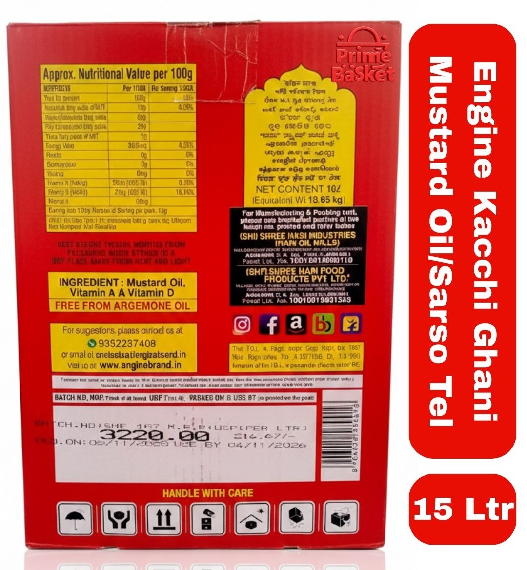 Engine Kacchi Ghani Mustard Oil/Sarso Tel 15 Ltr Tin