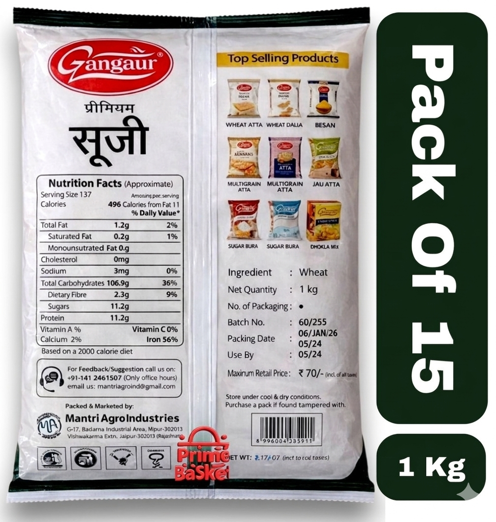 Gangaur Primium Sooji (Semolina) 1 Kg (Pack Of 15)