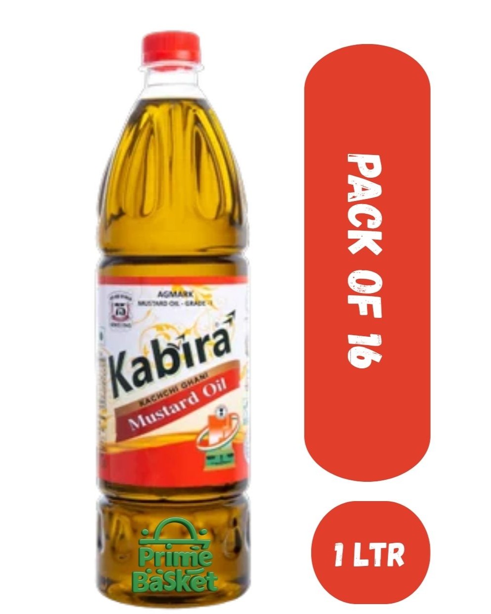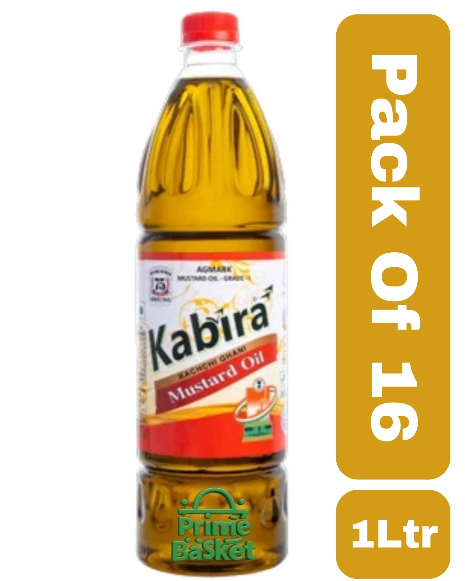 Kabira Agmark Kacchi Ghani Mustard Oil/Sarso Tel 1 Ltr Bottle (Pack Of 16)