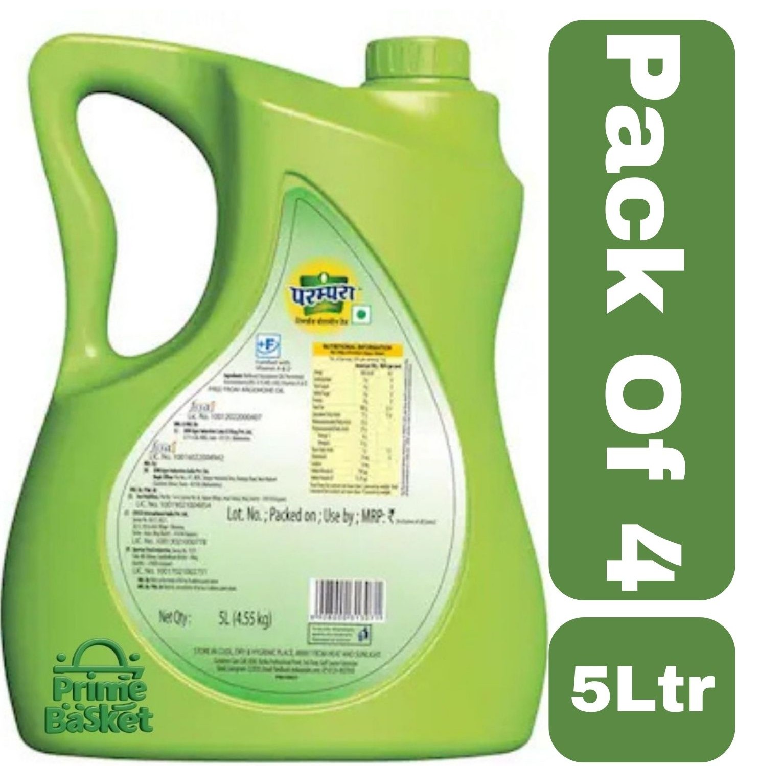 Parampara Soya Refined Oil 5 Ltr Can (Pack Of 4)