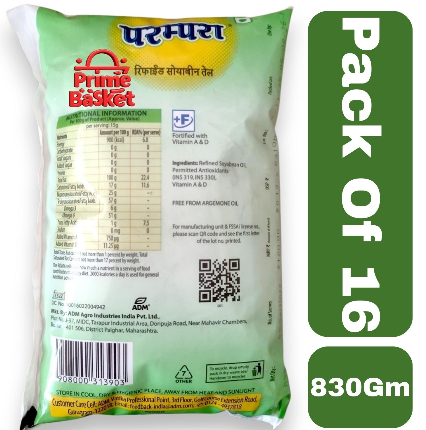 Parampara Soya Refined Oil 830 Gm Pouch (Pack Of 16)
