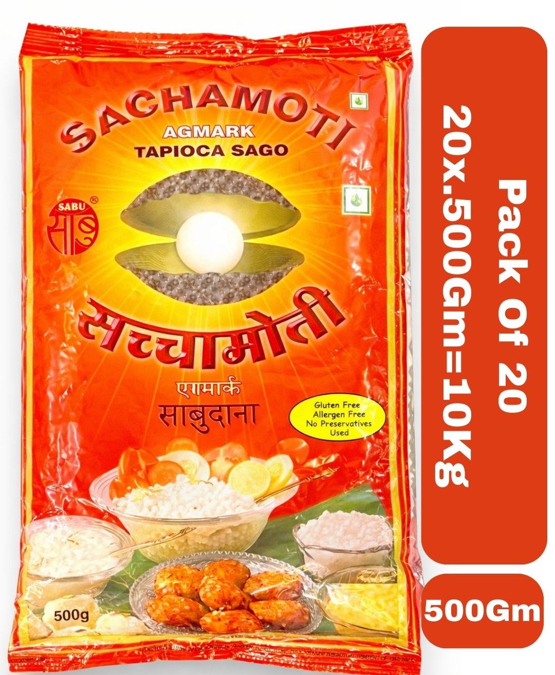 Sachamoti Tapioca Sago Premium Sabudana 500 Gm (Pack Of 20)