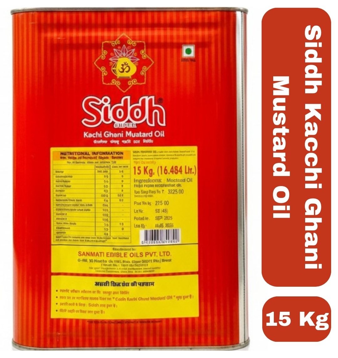 Siddh Kacchi Ghani Mustard Oil 15 Kg Tin