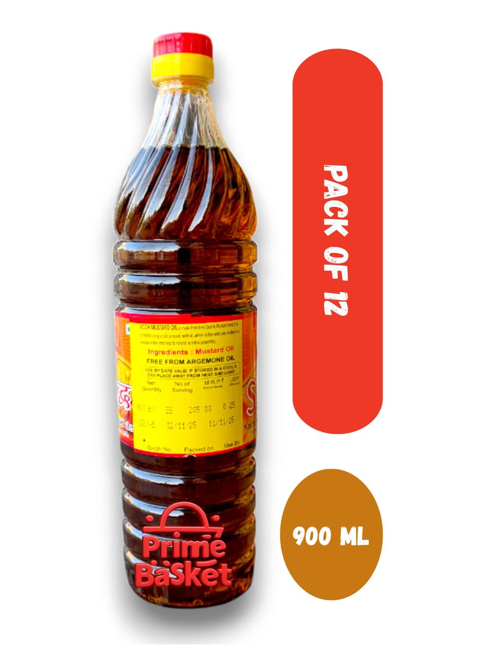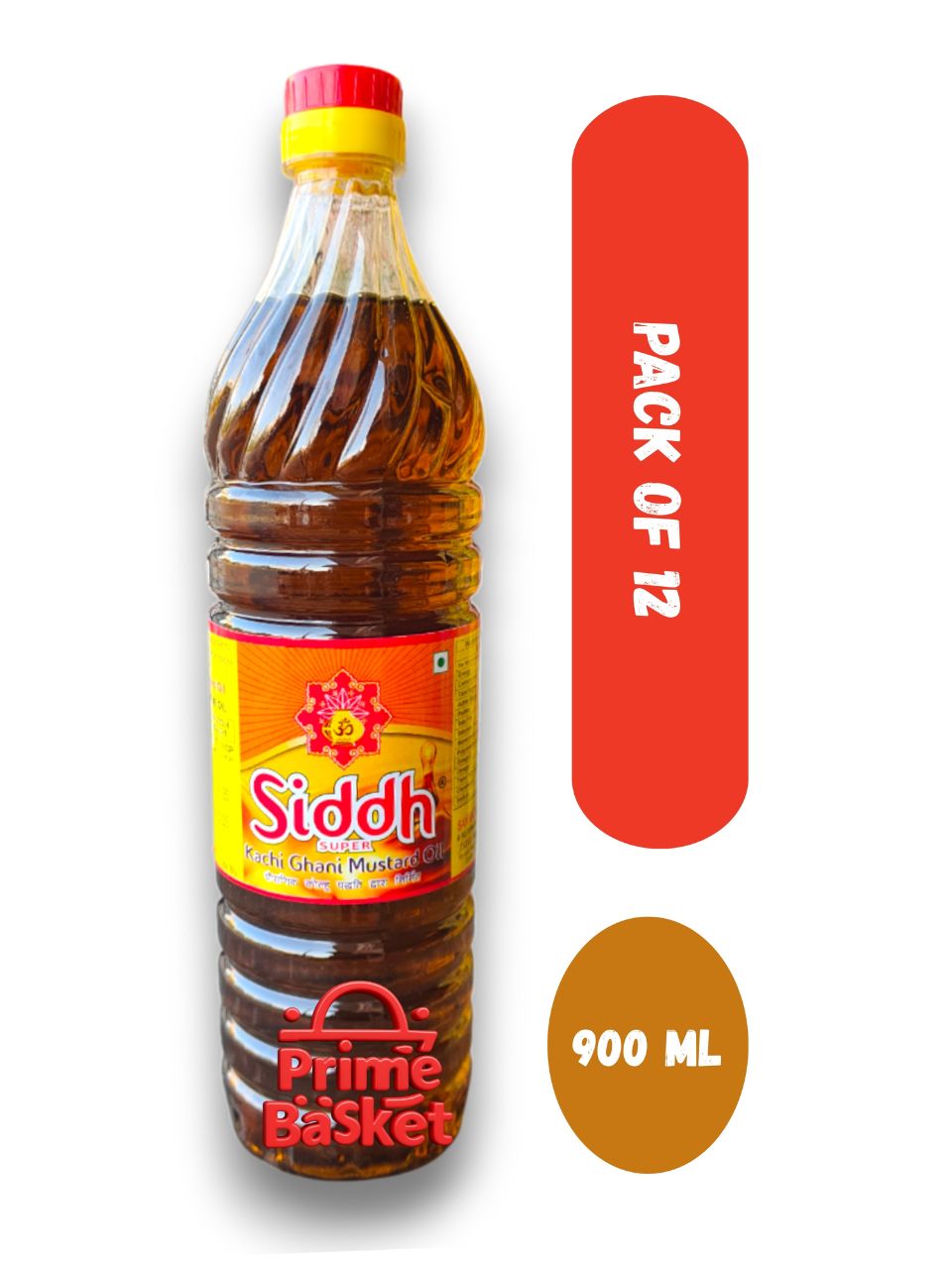 Siddh Kacchi Ghani Mustard Oil/Sarso Tel 900ml Bottle (Pack Of 12)