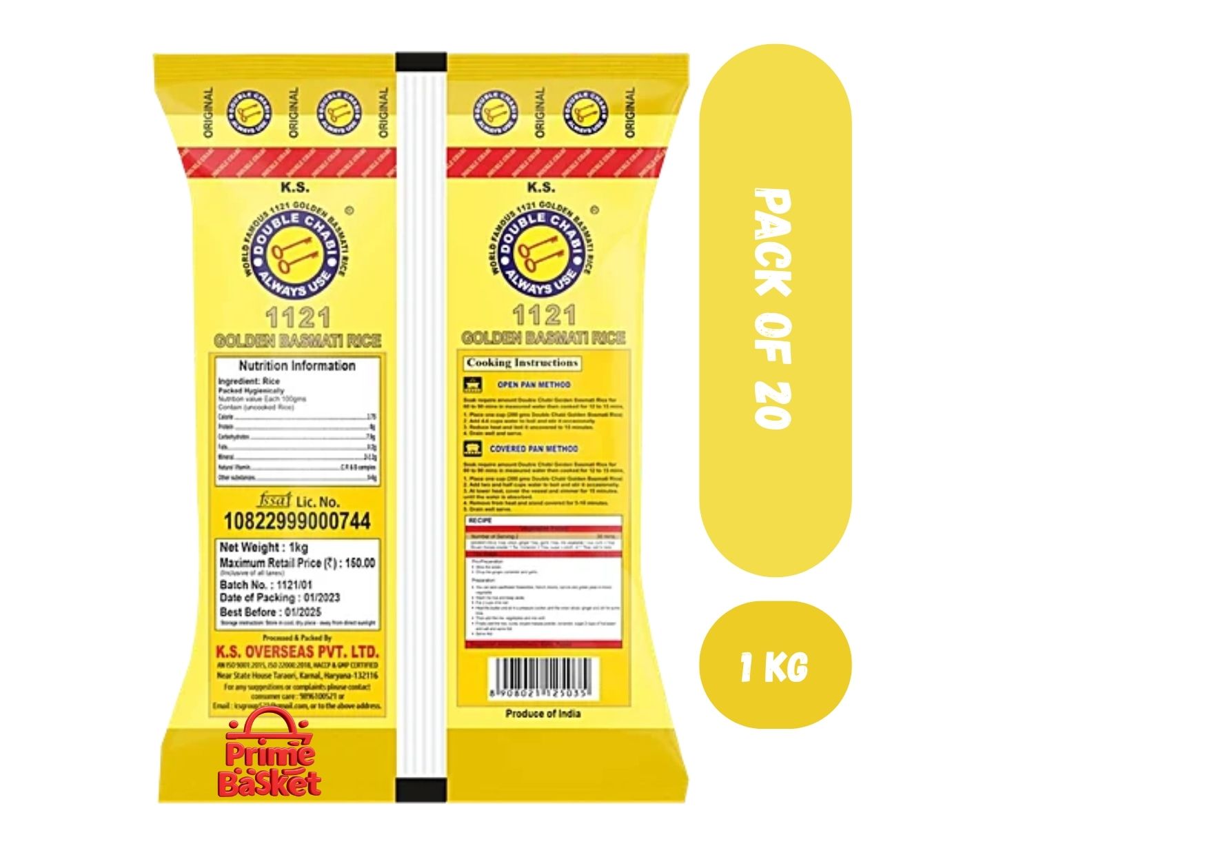 Double Chabi Premium 1121 Golden Basmati Rice 1 Kg (Pack Of 20)